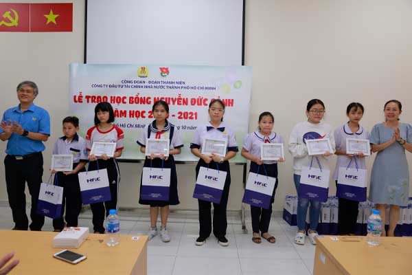 Tại buổi lễ, Công đoàn HFIC đã trao tặng học bổng cho 55 cháu là con đoàn viên, người lao động có hoàn cảnh khó khăn, học sinh giỏi hoặc đạt giải năng khiếu cấp Thành phố. Tổng số tiền học bổng đã trao là 88.500.000 đồng được vận động từ các doanh nghiệp. Ngoài ra Đoàn thanh niên HFIC trao mỗi cháu 1 phần quà, mỗi phần quà là 10 quyển tập.